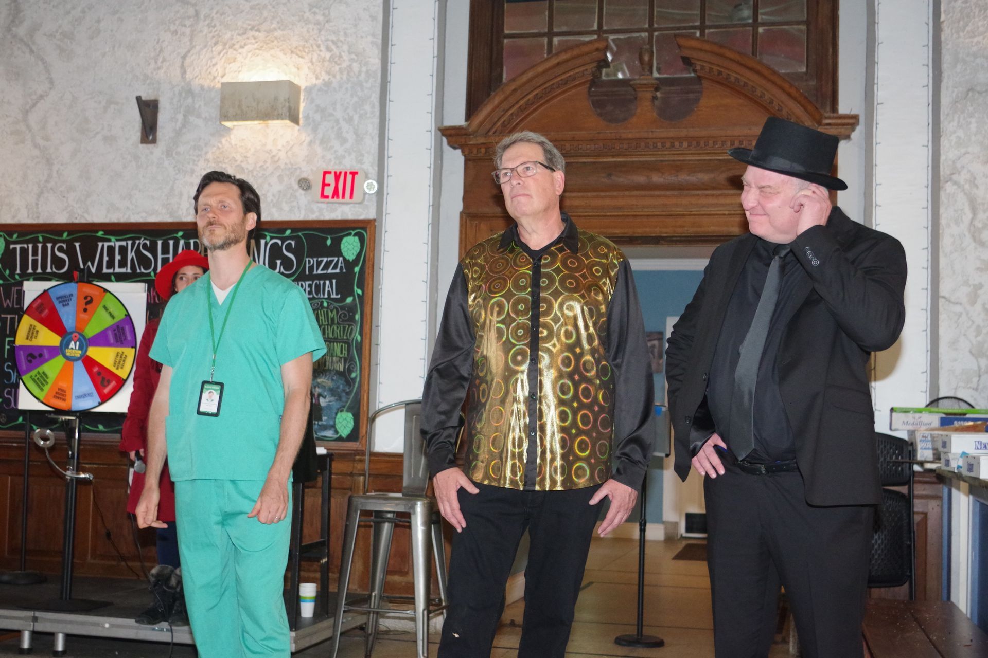 Our actors welcome you in character, gathering "clues" and "evidence" from the audience.